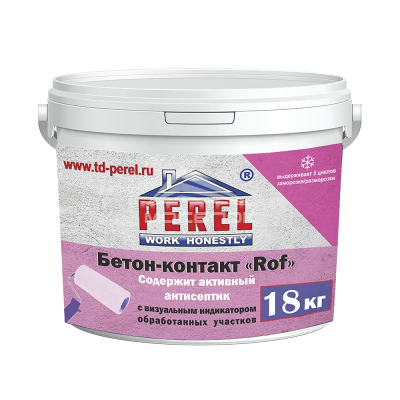 Бетон-контакт с антисептиком и визуальным индикатором, применяется для улучшения адгезии  к гладким бетонным основаниям. Не содержит растворителей. Расход 0,35 кг на м²