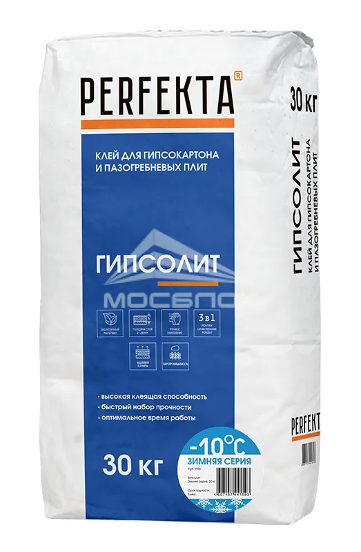 Клей для газобетона Perfekta Гипсолит, Зимняя серия, 30 кг