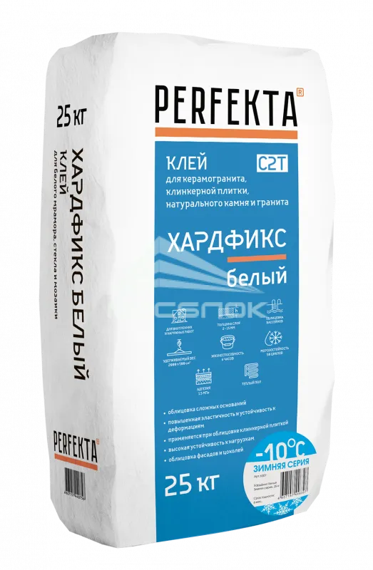 Клей плиточный Perfekta Хардфикс Белый Зимняя серия, 25 кг. Технические характеристики и преимущества: