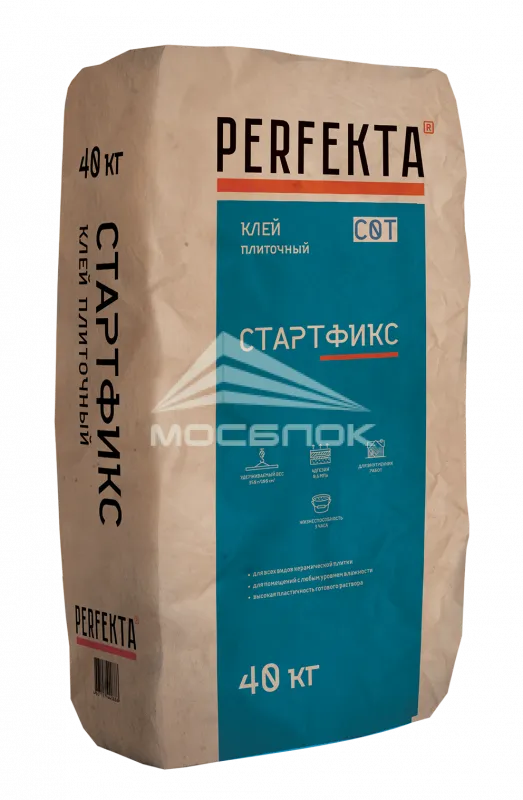 Клей плиточный Perfekta Стартфикс СО Т, 40 кг — это надежное решение для различных видов облицовочных работ, объединяющее в себе высокую технологичность, универсальность и проверенную эффективность. Использование качественного клея — залог долговечной, красивой и безопасной отделки, которая прослужит десятилетия. При выборе материалов для укладки плитки важно доверять профессионалам, и продукция Perfekta — один из лучших вариантов для достижения этих целей. Если вы ищете качественный клей для плитки, такой как: Клей плиточный Perfekta Стартфикс СО Т, 40 кг, компания "МОСБЛОК" — отличный выбор. У нас вы можете приобрести оригинальный клей Perfekta, который отличается высокой прочностью и надежностью, обеспечивая надежное крепление плитки на любых поверхностях. Благодаря нашим ценам и профессиональному обслуживанию, покупка станет максимально удобной. Закажите Клей плиточный Perfekta Стартфикс СО Т, 40 кг в "МОСБЛОК" и будьте уверены в долговечности и качестве вашей отделки!