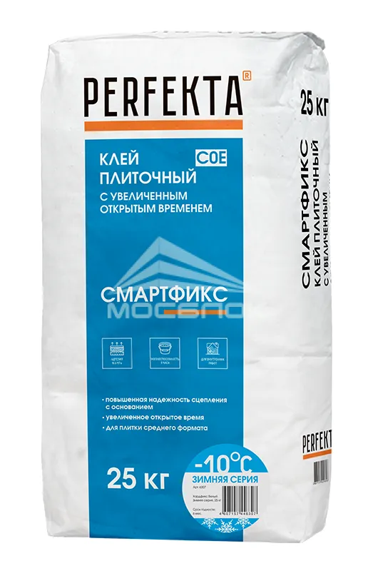 Клей плиточный Perfekta Смартфикс C0 E Зимняя серия, 25 кг в городе Воронеж — это профессиональный клей для укладки керамической, керамогранитной, натуральной и искусственной каменной плитки, разработанный ведущими производителями строительных материалов. Его формула основана на высококачественных цементах с добавками, обеспечивающими отличную адгезию, пластичность и долговечность. Одной из ключевых особенностей клея производителя Perfekta является его универсальность: он подходит как для внутренних, так и для наружных работ, а также для укладки на различные основания — бетон, цементно-стружечные плиты, гипсокартон, старое покрытие и даже системы утепления. Преимущества этого клея подтверждены многолетним опытом специалистов и отзывами довольных клиентов. Он обладает отличной ценой и качеством, что делает его оптимальным выбором как для профессиональных подрядчиков, так и для домашних мастеров, стремящихся к долговечности и эстетике.