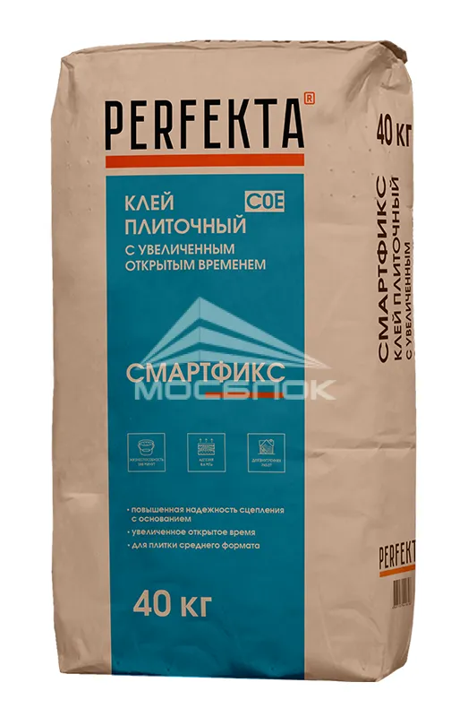 Клей плиточный Perfekta Смартфикс СО Е, 40 кг — это надежное решение для различных видов облицовочных работ, объединяющее в себе высокую технологичность, универсальность и проверенную эффективность. Использование качественного клея — залог долговечной, красивой и безопасной отделки, которая прослужит десятилетия. При выборе материалов для укладки плитки важно доверять профессионалам, и продукция Perfekta — один из лучших вариантов для достижения этих целей. Если вы ищете качественный клей для плитки, такой как: Клей плиточный Perfekta Смартфикс СО Е, 40 кг, компания "МОСБЛОК" — отличный выбор. У нас вы можете приобрести оригинальный клей Perfekta, который отличается высокой прочностью и надежностью, обеспечивая надежное крепление плитки на любых поверхностях. Благодаря нашим ценам и профессиональному обслуживанию, покупка станет максимально удобной. Закажите Клей плиточный Perfekta Смартфикс СО Е, 40 кг в "МОСБЛОК" и будьте уверены в долговечности и качестве вашей отделки!