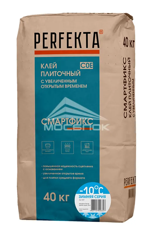 Клей плиточный Perfekta Смартфикс СО Е Зимняя серия, 40 кг в городе Воронеж — это профессиональный клей для укладки керамической, керамогранитной, натуральной и искусственной каменной плитки, разработанный ведущими производителями строительных материалов. Его формула основана на высококачественных цементах с добавками, обеспечивающими отличную адгезию, пластичность и долговечность. Одной из ключевых особенностей клея производителя Perfekta является его универсальность: он подходит как для внутренних, так и для наружных работ, а также для укладки на различные основания — бетон, цементно-стружечные плиты, гипсокартон, старое покрытие и даже системы утепления. Преимущества этого клея подтверждены многолетним опытом специалистов и отзывами довольных клиентов. Он обладает отличной ценой и качеством, что делает его оптимальным выбором как для профессиональных подрядчиков, так и для домашних мастеров, стремящихся к долговечности и эстетике.