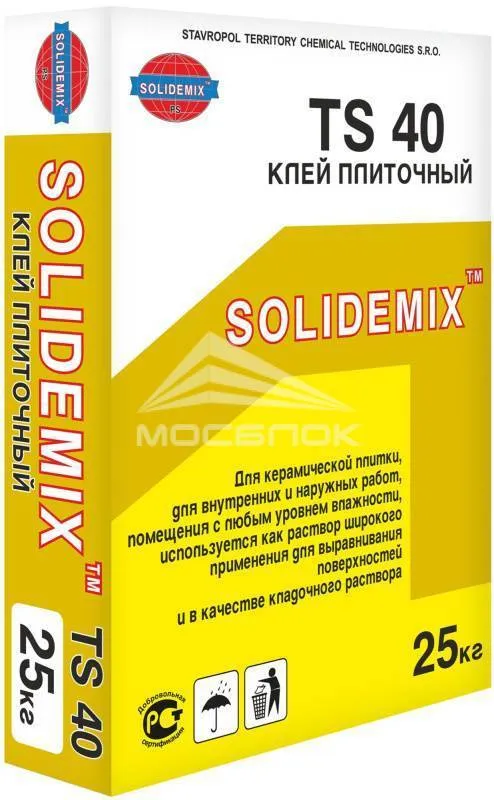 Клей плиточный SOLIDEMIX TS 40. Технические характеристики и преимущества: