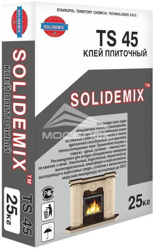 Клей плиточный SOLIDEMIX TS 45. Технические характеристики и преимущества:
