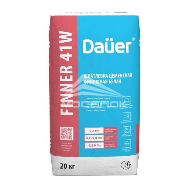 Шпатлевка цементная финишная Dauer FINNER 41W белая 180/6,5/F50, 20 кг в городе Воронеж отличается быстрым временем высыхания — обычно в пределах 2-3