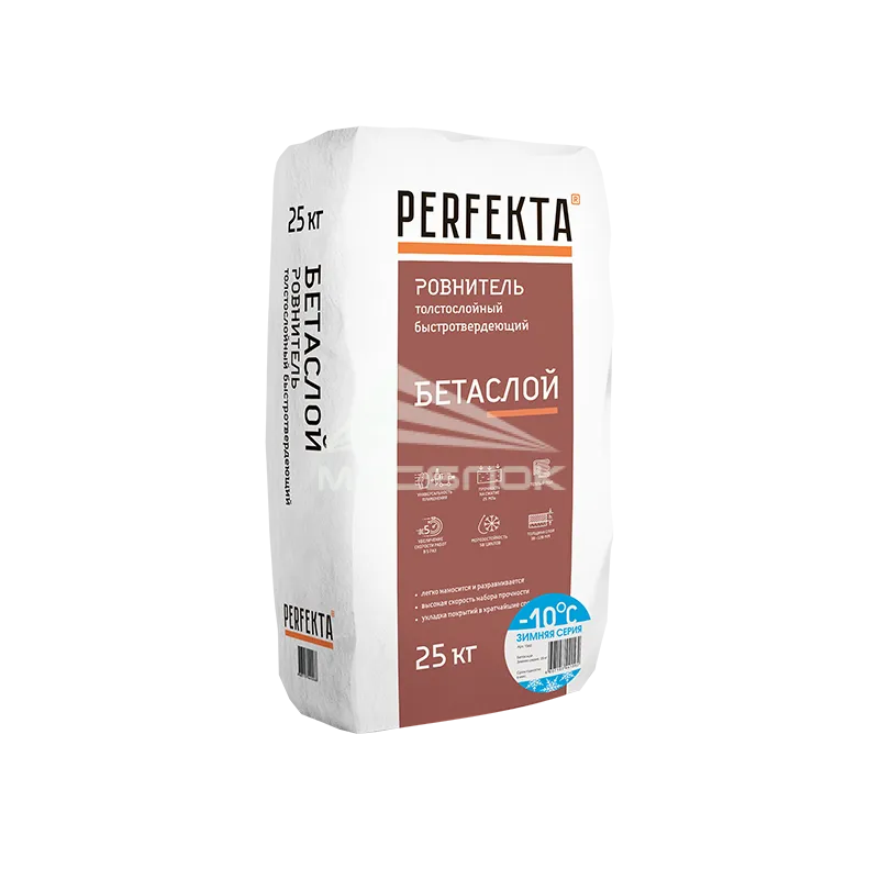 РОВНИТЕЛЬ ТОЛСТОСЛОЙНЫЙ БЫСТРОТВЕРДЕЮЩИЙ Perfekta® “БЕТАСЛОЙ” ЗИМНЯЯ СЕРИЯ предназначен для выполнения работ при отрицательных температурах по выравниванию и устройству прочного пола, эксплуатируемого в условиях низких и умеренных нагрузок (жилые, административные, торговые и общественные помещения, эксплуатируемые кровли, балконы, террасы).