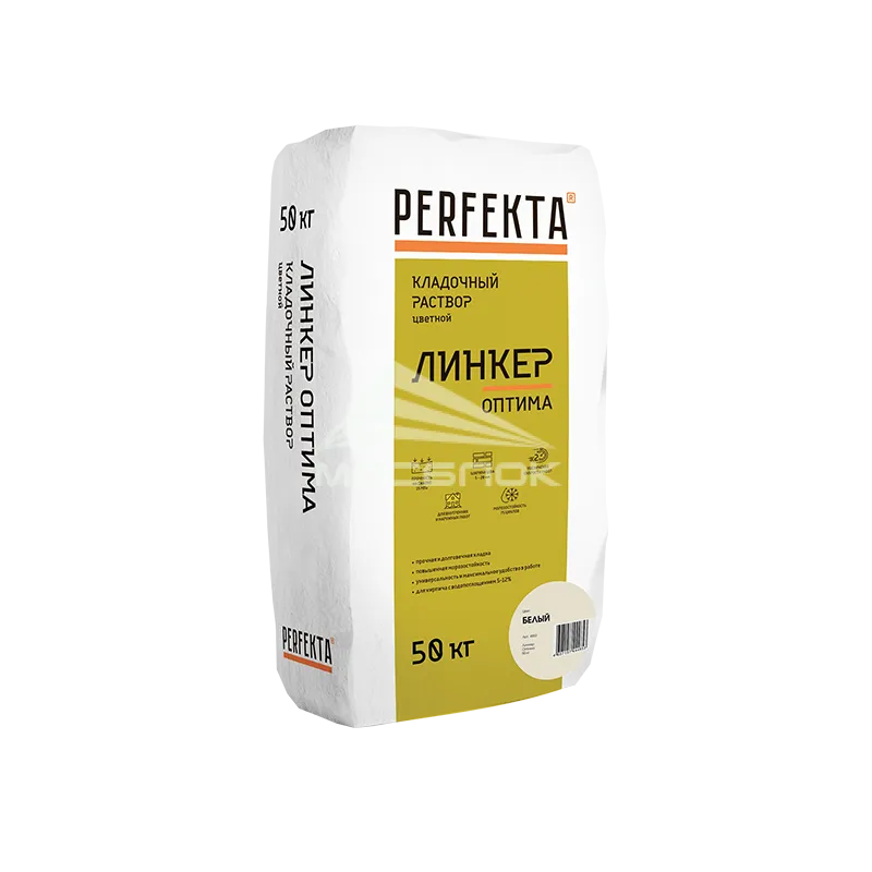 Кладочный раствор Perfekta Линкер Оптима белый, 50 кг — это распространённый строительный материал, используемый для связки кирпича, камня, блоков и других элементов при возведении стен, фасадов, фундаментов и внутренних перегородок города Воронеж. Высокое качество кладочной смеси производителя Perfekta напрямую влияет на прочность, долговечность и эксплуатационные характеристики сооружения. Благодаря тщательно подобранной рецептуре, такая смесь обеспечивает равномерное распределение нагрузки, минимизирует образование трещин и деформаций, а также способствует быстрому схватыванию и повышенной прочности кладки.