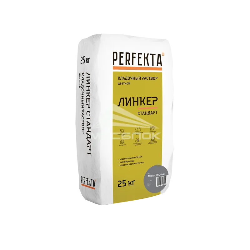 Кладочный раствор Perfekta Линкер Стандарт антрацитовый, 25 кг — это распространённый строительный материал, используемый для связки кирпича, камня, блоков и других элементов при возведении стен, фасадов, фундаментов и внутренних перегородок города Воронеж. Высокое качество кладочной смеси производителя Perfekta напрямую влияет на прочность, долговечность и эксплуатационные характеристики сооружения. Благодаря тщательно подобранной рецептуре, такая смесь обеспечивает равномерное распределение нагрузки, минимизирует образование трещин и деформаций, а также способствует быстрому схватыванию и повышенной прочности кладки.