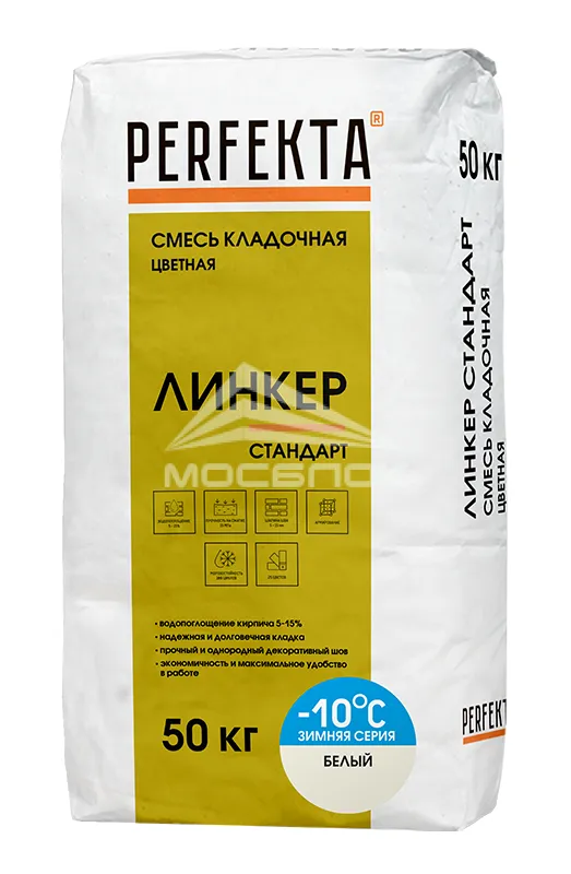 Кладочный раствор Perfekta Линкер Стандарт Зимняя серия белый, 50 кг — это фундамент любого кирпичного или каменного сооружения. Правильный подбор состава, пропорций и соблюдение технологий позволяют добиться высокой прочности, долговечности и эстетики зданий. Современные добавки и технологии позволяют оптимизировать расход материалов и повысить эксплуатационные характеристики кладочных смесей производителя Perfekta зима.