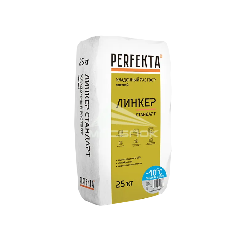 Кладочный раствор Perfekta Линкер Стандарт Зимняя серия серебристо-серый, 25 кг — это фундамент любого кирпичного или каменного сооружения. Правильный подбор состава, пропорций и соблюдение технологий позволяют добиться высокой прочности, долговечности и эстетики зданий. Современные добавки и технологии позволяют оптимизировать расход материалов и повысить эксплуатационные характеристики кладочных смесей производителя Perfekta зима.
