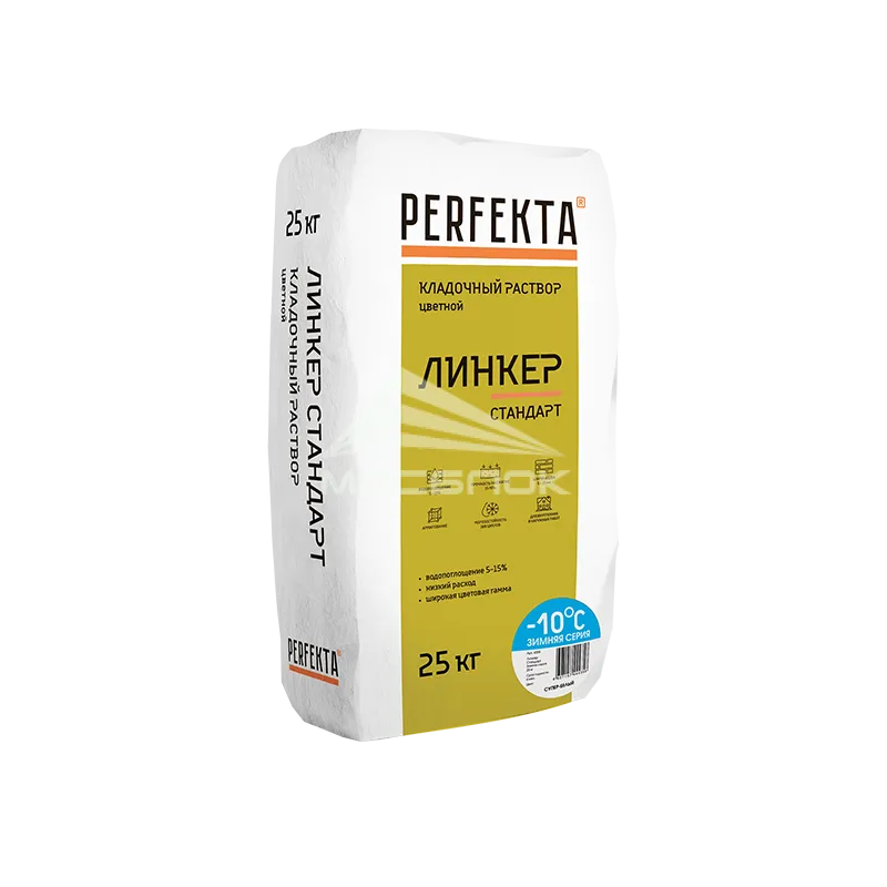 Кладочный раствор Perfekta Линкер Стандарт Зимняя серия супер-белый, 25 кг — это фундамент любого кирпичного или каменного сооружения. Правильный подбор состава, пропорций и соблюдение технологий позволяют добиться высокой прочности, долговечности и эстетики зданий. Современные добавки и технологии позволяют оптимизировать расход материалов и повысить эксплуатационные характеристики кладочных смесей производителя Perfekta зима.