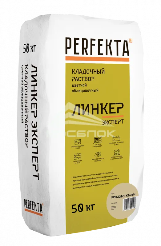 Кладочный раствор Perfekta Линкер Эксперт кремово-желтый, 50 кг — это фундамент любого кирпичного или каменного сооружения. Правильный подбор состава, пропорций и соблюдение технологий позволяют добиться высокой прочности, долговечности и эстетики зданий. Современные добавки и технологии позволяют оптимизировать расход материалов и повысить эксплуатационные характеристики кладочных смесей производителя Perfekta.