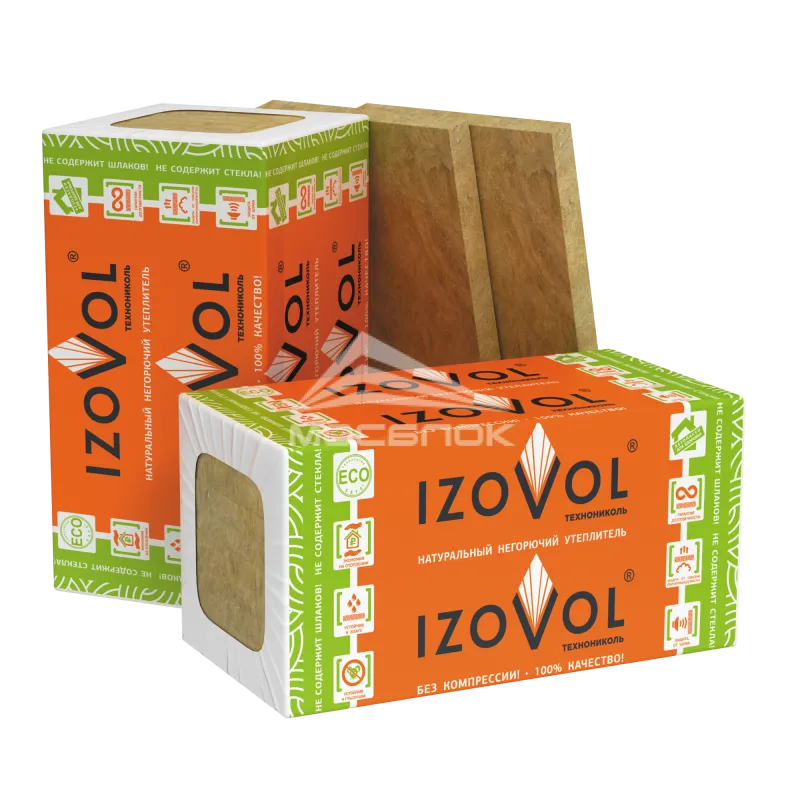 Высокая огнестойкость: Каменная вата ТехноНИКОЛЬ IZOVOL Л-35, 1200Х600Х100 мм, (4 плиты, 2,88 кв.м) выдерживает температуры до 1000°C без потери своих свойств. Это особенно важно при создании противопожарных систем и огнезащитных конструкций.